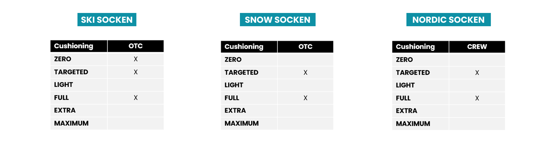 Unsere Ski- und Snowboardsocken sind in verschiedenen Höhen und Polsterungsstufen erhältlich, damit Sie das perfekte Paar finden, das Ihnen den größten Komfort bietet. Nicht sicher, welche Polsterung Sie wählen sollen? Schauen Sie sich unseren Sock Cushioning Guide an.
