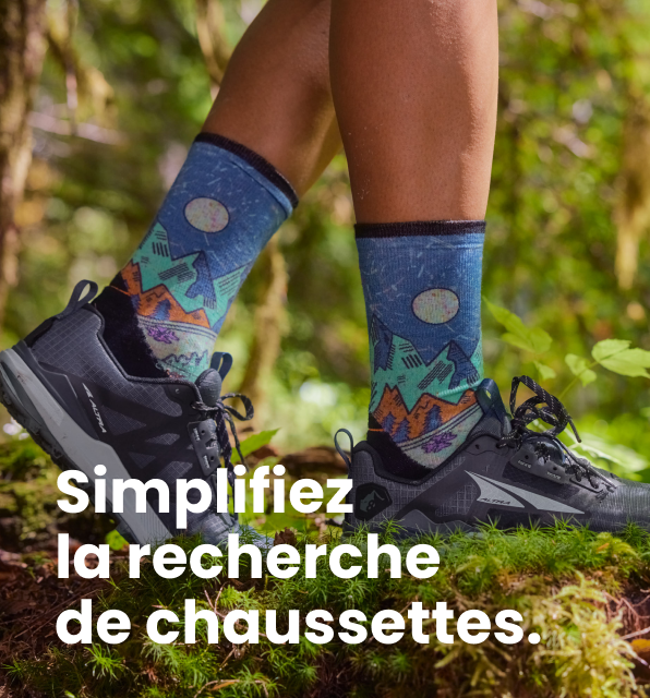 Avec les bonnes chaussettes, chaque aventure est plus confortable. Utilisez notre sélecteur de chaussettes pour trouver la paire parfaite.