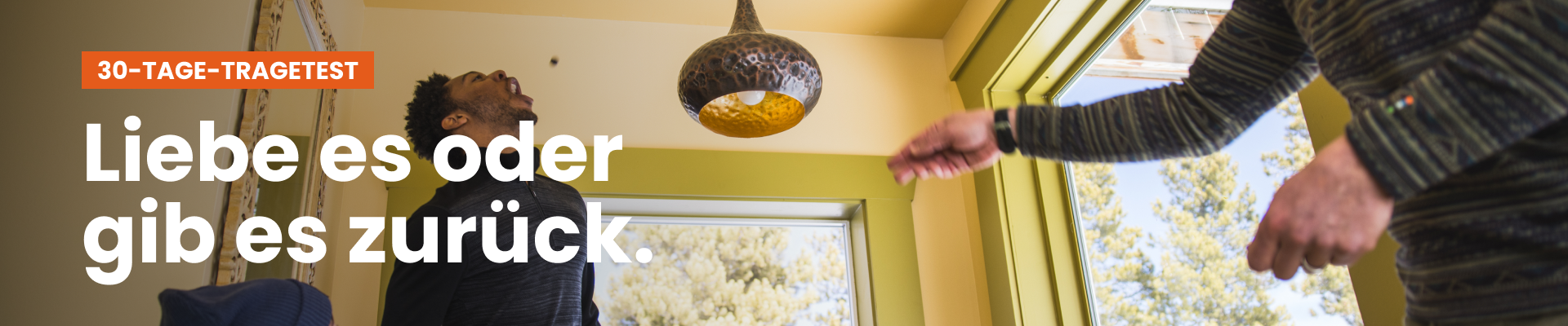 Wandere, laufe, klettere oder entspanne dich 30 Tage lang. Wenn sie dich nicht überzeugen, kannst du sie in jedem Zustand zurückgeben und erhältst eine volle Rückerstattung – Versand inklusive. Vollständige Geschäftsbedingungen unten auf der Seite (*).