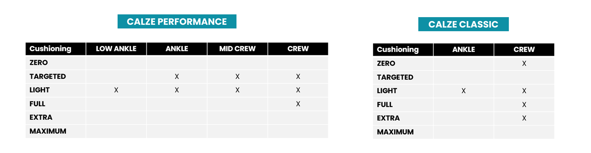 Le nostre calze da escursionismo sono disponibili in diverse altezze e livelli di ammortizzazione, così puoi trovare il paio perfetto che ti offrirà il massimo comfort. Non sei sicuro di quale ammortizzazione scegliere? Dai un'occhiata alla nostra guida all'ammortizzazione delle calze.